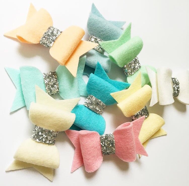 Our 'Millie' bow is super cute and perfect for little ladies. With a wide range of beautiful wool felt colours to choose from, you can have completely one colour or add gold or silver glitter for a bit of sparkle.