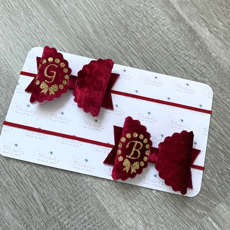 A beautiful selection of velvet fabrics teamed with gold or silver glitter and personalised with a co-ordinating initial monogram